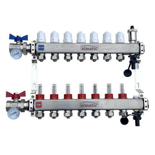 7 Port Underfloor Heating Stainless Steel manifold including: